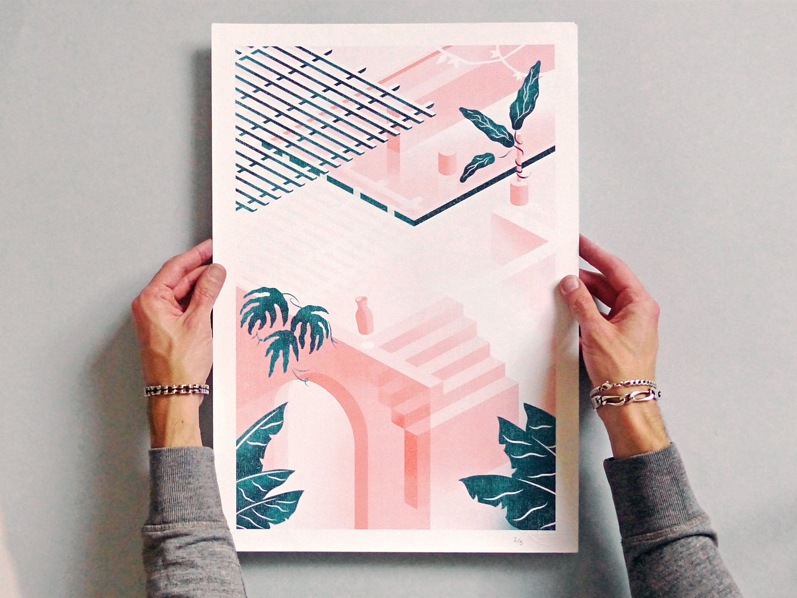Thanks to the variability in texture of each paper sheet, each print is unique. A seal is embossed at the bottom right part of the print to confirm its authenticity.